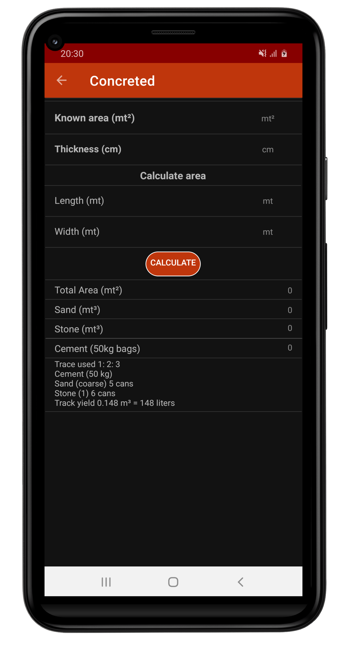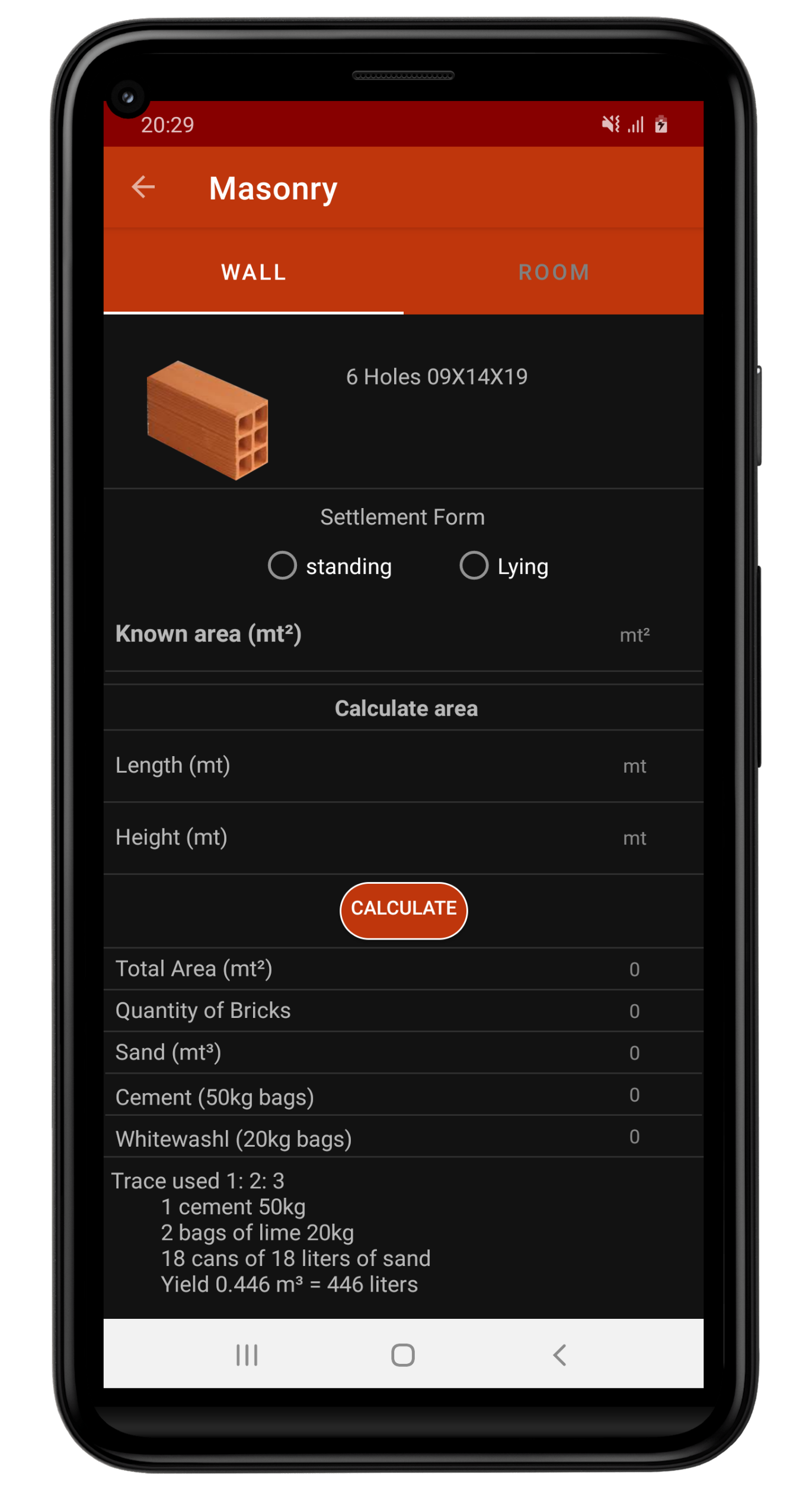 Os Cálculos incluem quantidade de Areia, Cimento, Cal, Argamassa, Piso, Brita.